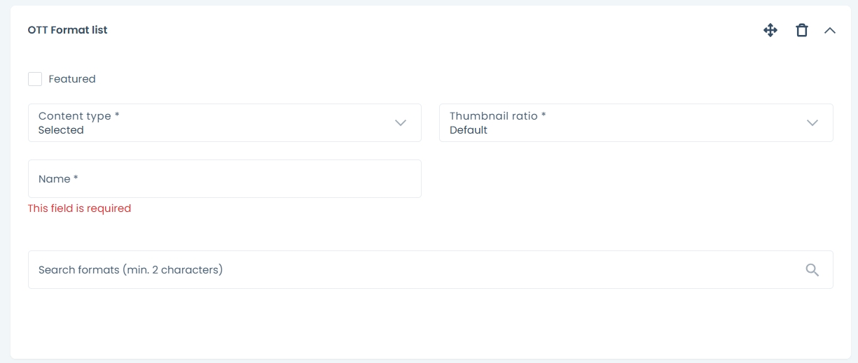 Ten komponent umożliwia grupowanie formatów pod wspólnym tematem. Aby skonfigurować listę formatów