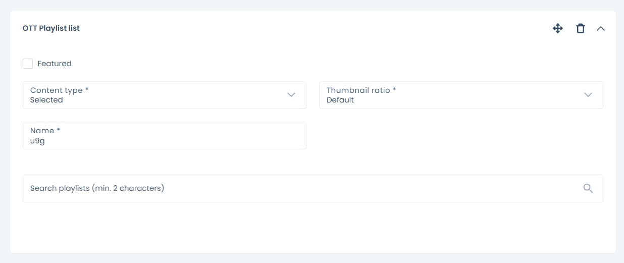 Kliknij na pasek wyszukiwania, aby dodać listy odtwarzania lub wpisz tytuł listy odtwarzania i wybierz wybraną listę, aby dodać ją do komponentu.