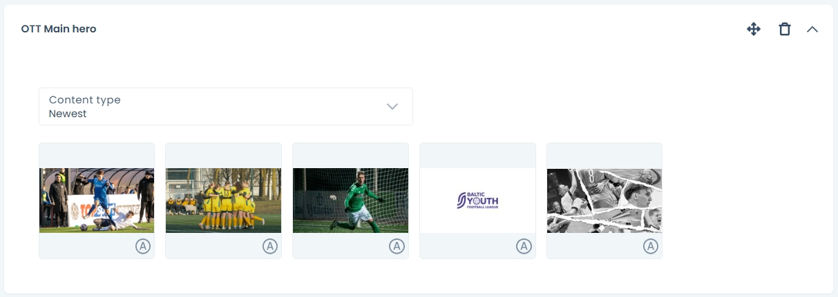 Główne Hero OTT pozwala na prezentowanie wybranych elementów treści. Możesz zdecydować, jak treści są wybierane: