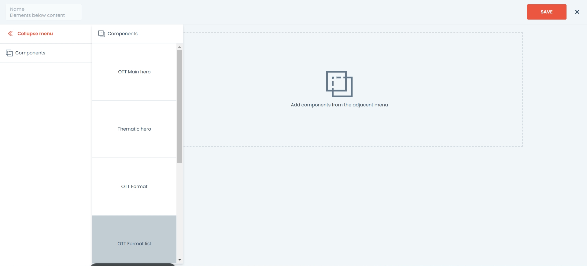Otwórz sekcję Komponenty. Dodaj komponenty zgodnie z Twoimi potrzebami. Lista komponentów odpowiada funkcjom naszego serwisu OTT.