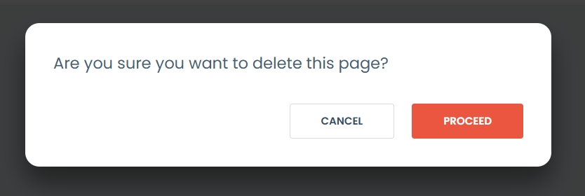 To delete press the delete option and a deletion panel will open. To confirm press proceed button. To abort press cancel button.