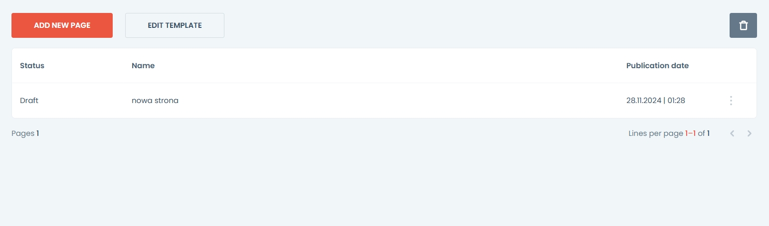 The Dashboard allows you to efficiently organize your work around Pages by providing tools to quickly reach, modify and rearange created content.