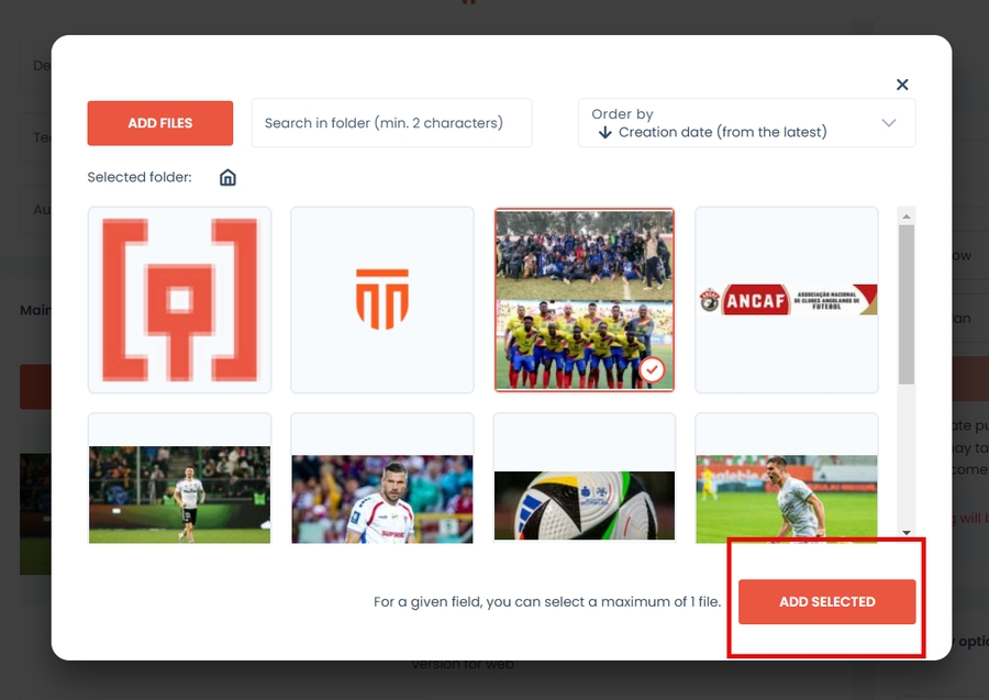 Wybierz obraz. Następnie naciśnij przycisk dodaj wybrane.