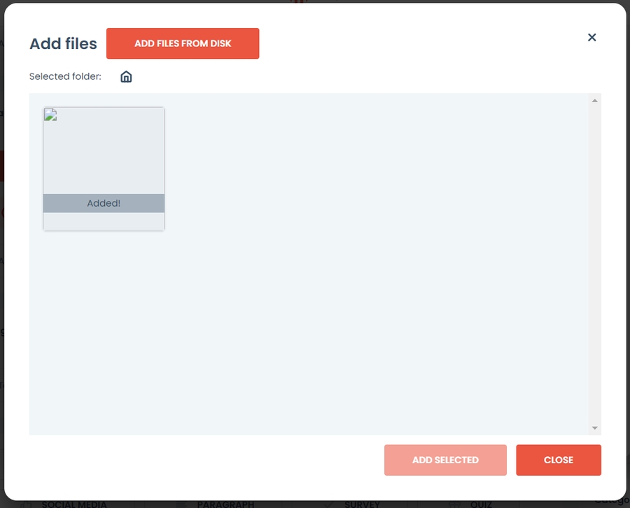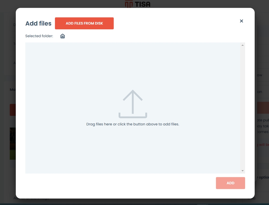 Kliknij, aby dodać pliki z dysku lub przeciągnij je bezpośrednio na szare pole.