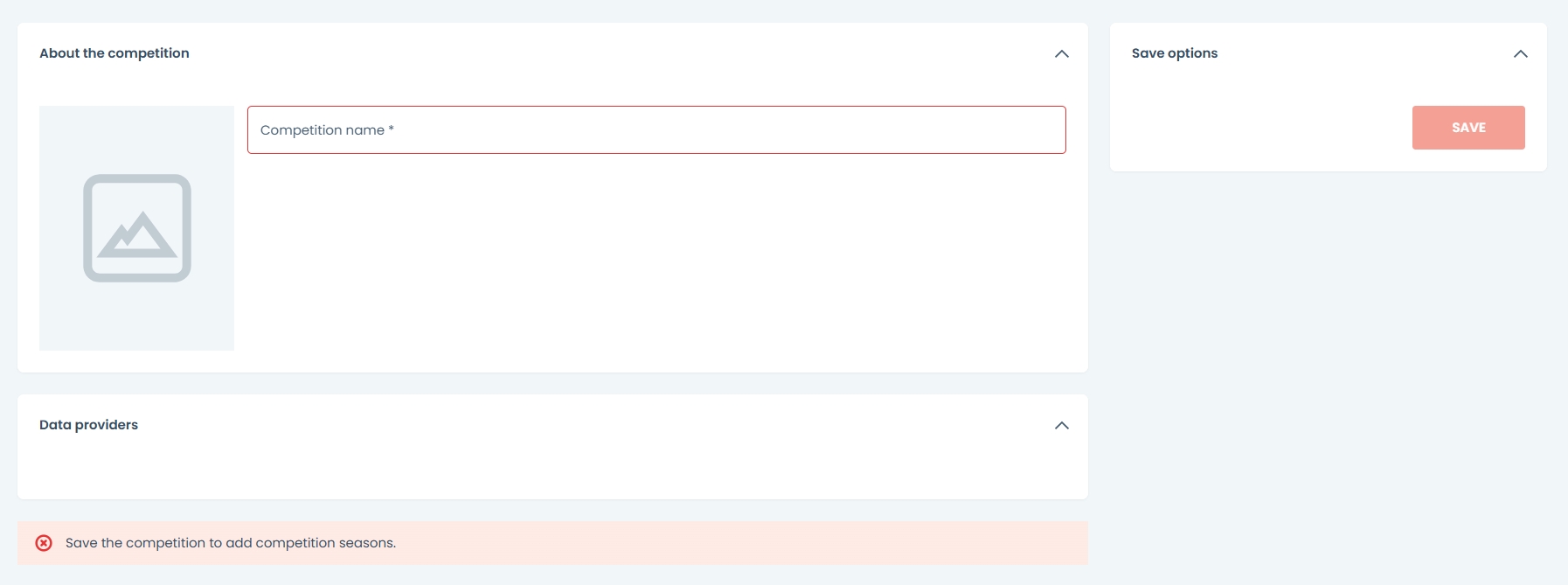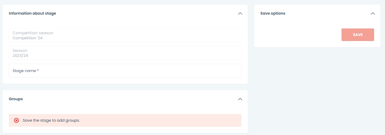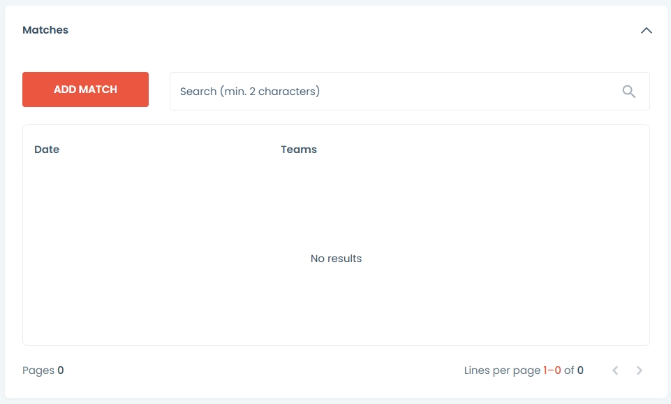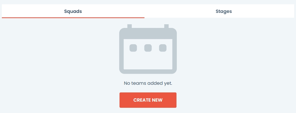 Dodaj zespoły biorące udział w tym sezonie rozgrywek. Naciśnij utwórz nowy, aby dodać zespoły.