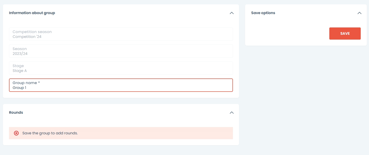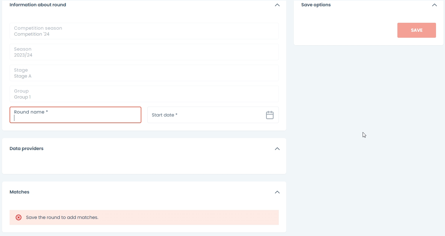 Otworzy się okno rundy. Podaj nazwę rundy i datę rozpoczęcia. Naciśnij Zapisz, aby kontynuować.