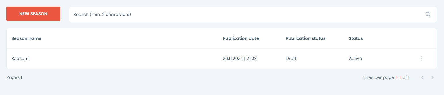 „Season Management Dashboard” zostanie otwarty.