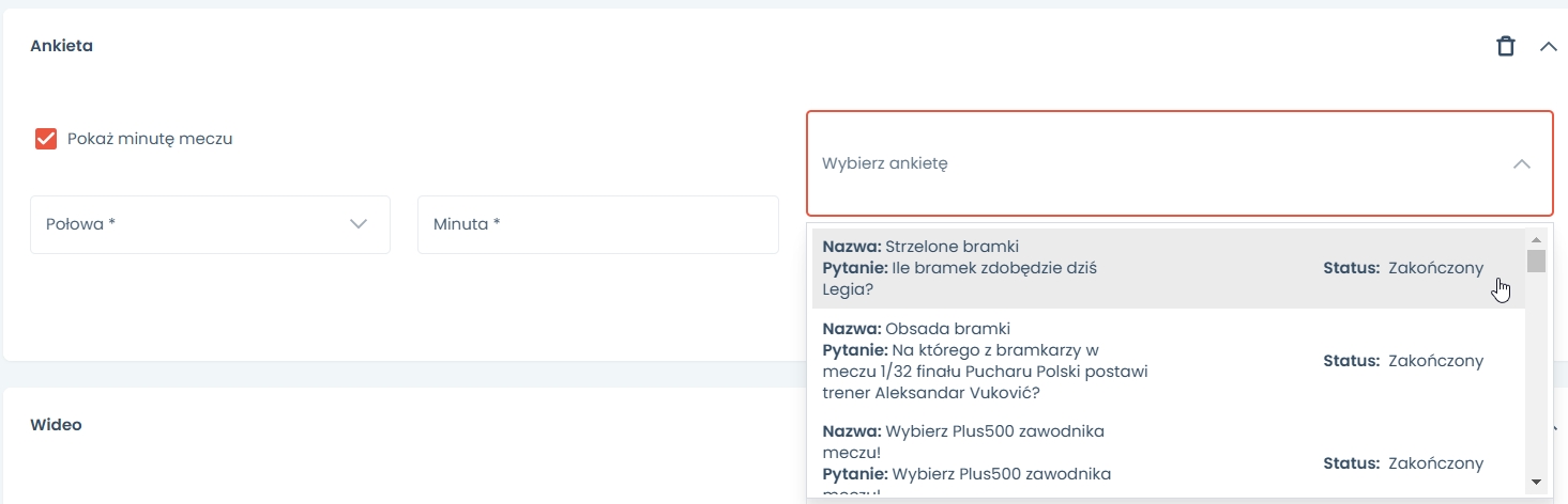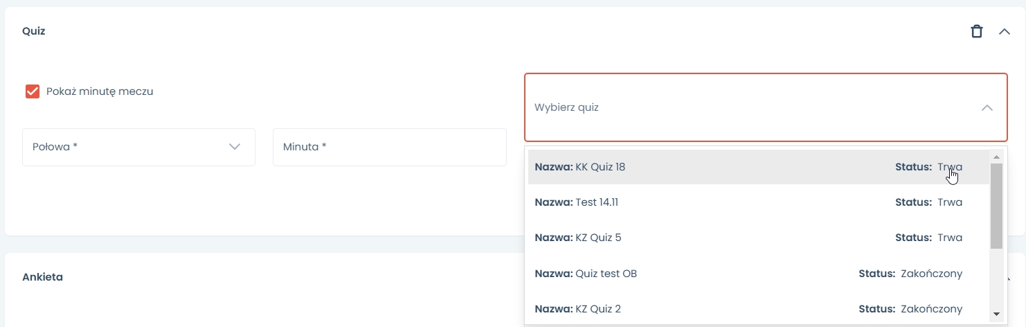 Zaznacz, jeśli chcesz, aby była wyświetlana minuta meczu