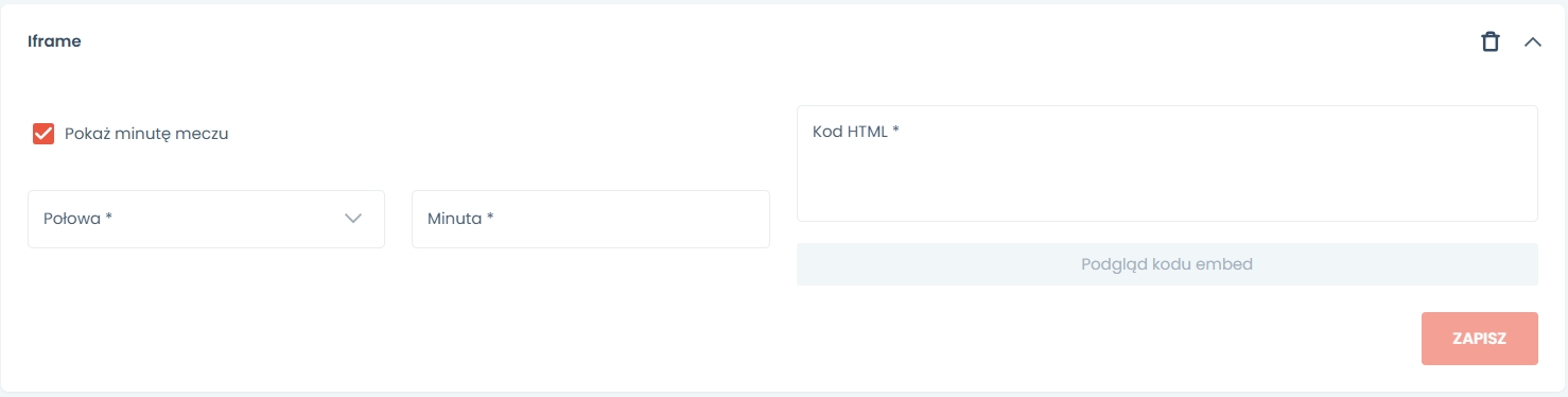 Zaznacz, jeśli chcesz pokazać minutę meczu
