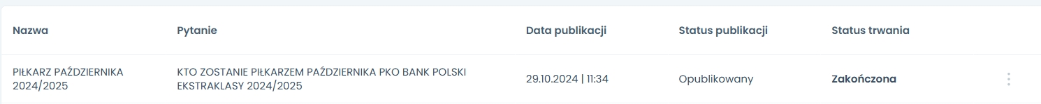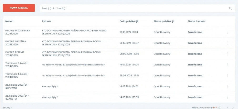Ankiety są wyświetlane według daty publikacji, od najnowszych do najstarszych.