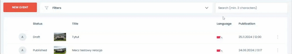 Panel sterowania umożliwia zarządzanie wszystkimi treściami stworzonymi w ramach tego modułu.