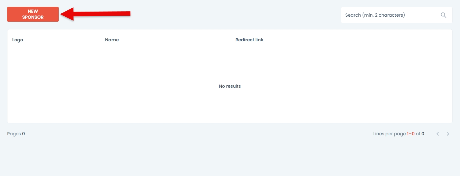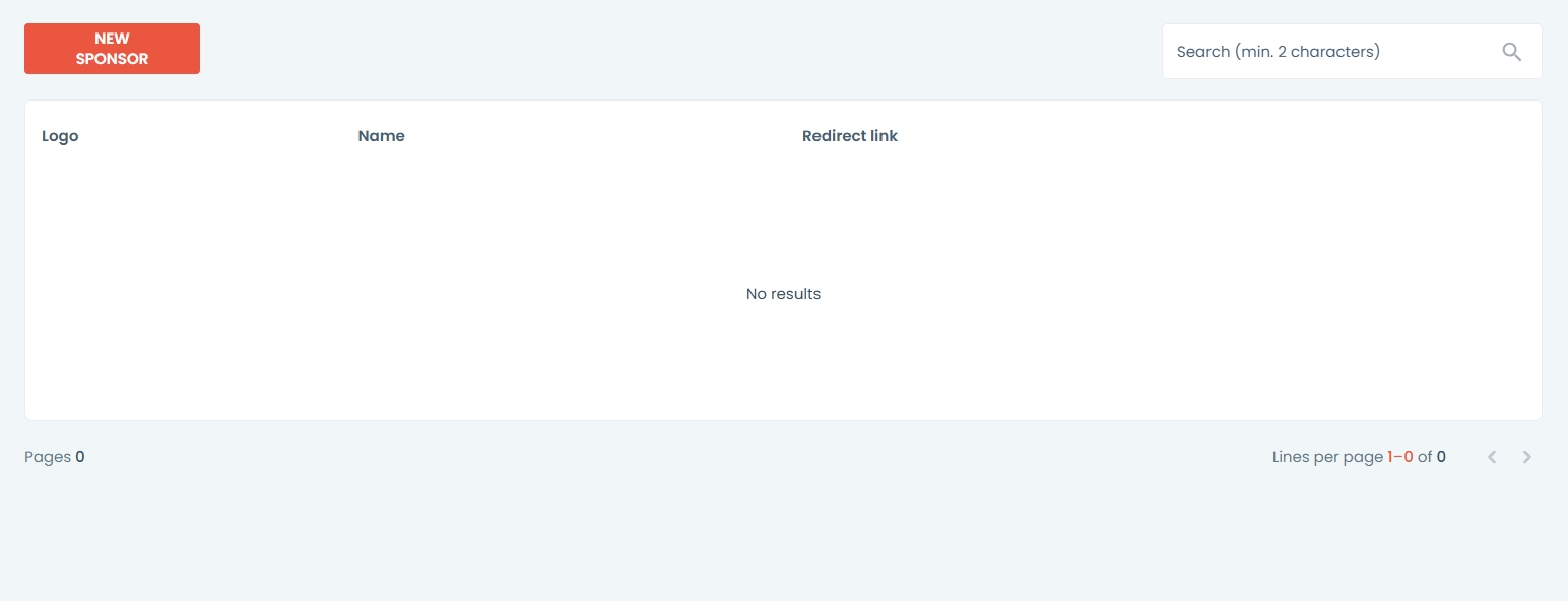 Aby wyszukać sponsora, użyj paska wyszukiwania znajdującego się nad tabelą.