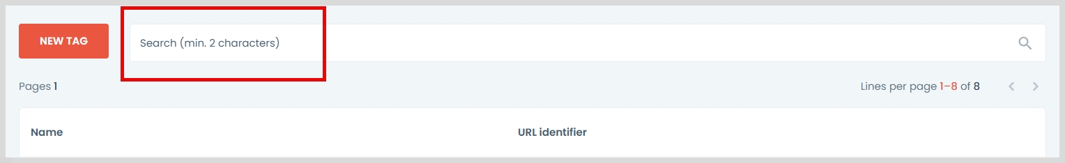 W pasku wpisz tag do wyszukania min. 2 litery.