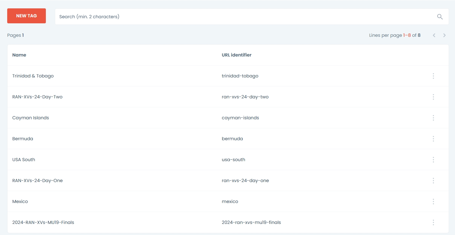 Tagi odgrywają kluczową rolę w poprawie doświadczenia użytkownika, umożliwiając efektywną nawigację i odkrywanie odpowiednich treści. Umpire zawiera zbiór wszystkich używanych w systemie tagów, pozwalając na efektywną ich przegląd, wyszukiwanie oraz edycję w sytuacjach, gdy nie chcemy tracić otagowanej treści przy zmianie nazwy bądź usuwaniu niepotrzebnych tagów.